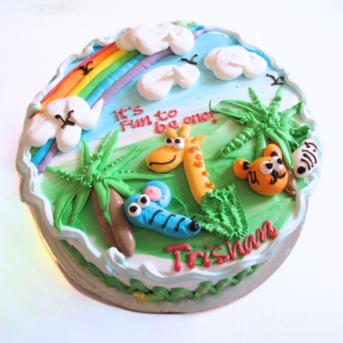 Handpiped safari animals design cake! Choose from a wide range of cake flavours (top-up to exquisite flavours such as Passion Pink Guava, Rambutan Osmanthus Yogurt, Straw...