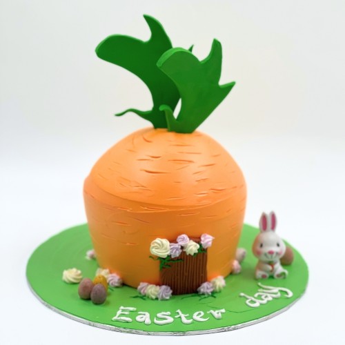 A sweet, pure-pewter bunny offers up its beloved carrot home for all to visit! This gigantic carrot house made out of cake, and decorated with a perk up rabbit topper (in...