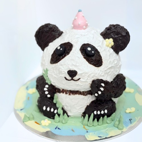 An irresistibly cute tumbler cake shaped like a cuddly 3D panda, complete with a party hat and playful details. This adorable companion is not just a treat for the eyes b...