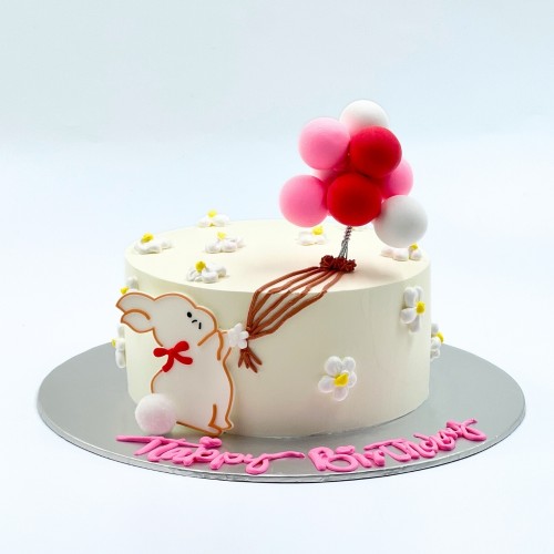 Hang on Bunny! This adorable design is decorated to look like bunny is holding on to a bouquet of flyaway balloons! Simple handpiped design with a silicon cut-out piece o...