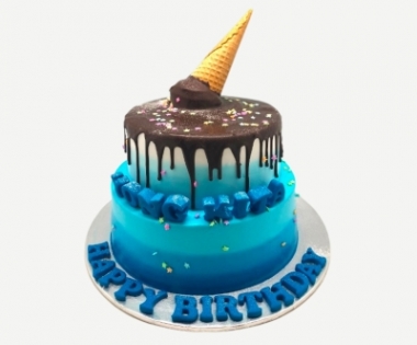 Someone dropped their ice-cream?? A playful blue ombre drip-cake design. Choose from a wide range of cake flavours. Prefer to have it as a 1-tier Cake (Minimum 0.5KG)? Or...