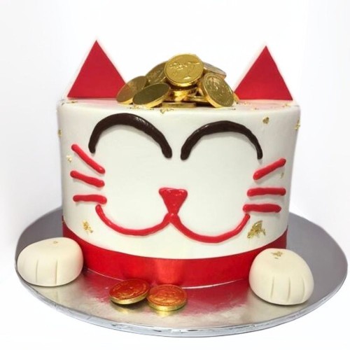 The Fortune Cat is believed to attract good luck and fortune for its owners. This cute number is designed with fondant features and topped with edible chocolate gold coin...