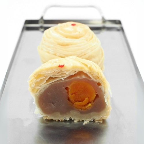 A timeless duo comes to life in this refined creation, where Teochew yam paste (Orh-Ni) rests at the heart of a classic red bean paste mooncake. The mellow sweetness of t...