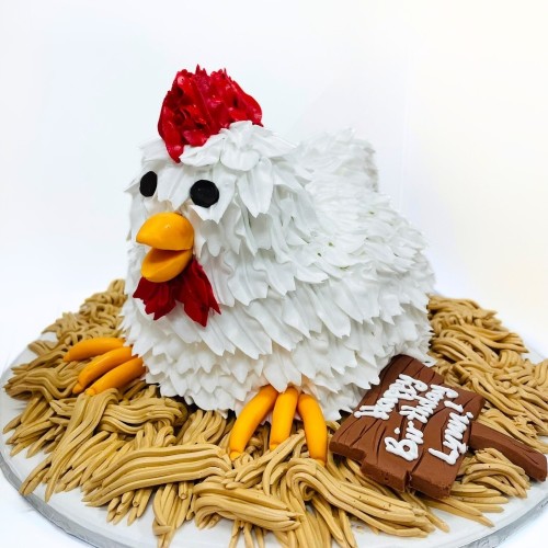 Looking for a chickeny cake for your next party? This 3D Chicken/Hen Cake is a handpiped with freshcream for the feathery effect cake with complete with fondant features. Choose from a wide range of cake flavours (top-up to exquisite flavours such as Passion Pink Guava, Rambutan Osmanthus Yogurt, Strawberry Milk-Shake Panna Cotta, Grapefruit Oolong, Yakult Soju, etc available, contact our team for assistance). For further customisation request, please contact 6457 6159. Delivery service available at $18 per trip, waived for orders above $280. For urgent order of less than required notice period, please contact us at 64576159 or enquiries@pgcake.com for assistance.