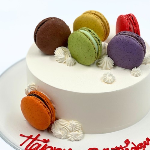 A joyful burst of colour and sweetness, our Cheery Macaron Cake is a celebration in itself. This delightful creation is playfully adorned with a vibrant array of delicate macarons — in assorted flavours and hues (NOTE: actual colors of macarons might differ depending on stock availability). Beneath its playful exterior lies a luscious cake that’s as charming to taste as it is to behold. Perfect for birthdays, parties, or any moment worth celebrating in style! Choose from a wide range of cake flavours (top-up to exquisite flavours such as Passion Pink Guava, Rambutan Osmanthus Yogurt, Strawberry Milk-Shake Panna Cotta, Grapefruit Oolong, Yakult Soju, etc available, contact our team for assistance). For further customisation request, please contact 6457 6159. Delivery service available at $18 per trip, waived for orders above $280. For urgent order of less than required notice period, please contact us at 64576159 or enquiries@pgcake.com for assistance.
