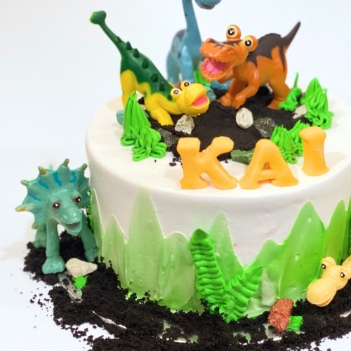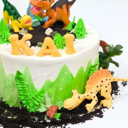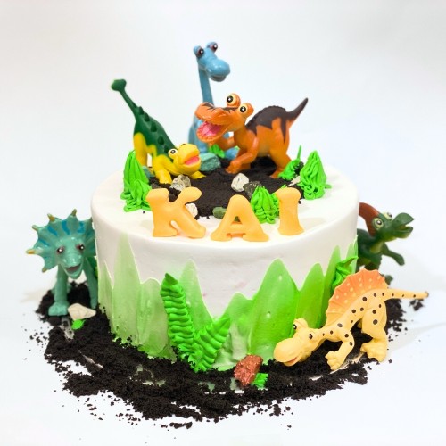 [This is for Express / Same-Day Ordering. For advance orders, please select "Design Cake" category] Gather up Dinos, we are going to a party! Delight any dinosaur lovers with this fun prehistoric-themed cake! Freshcream coated and decorated with 5pieces of plastic baby dinosaur toys & chocolate stones.