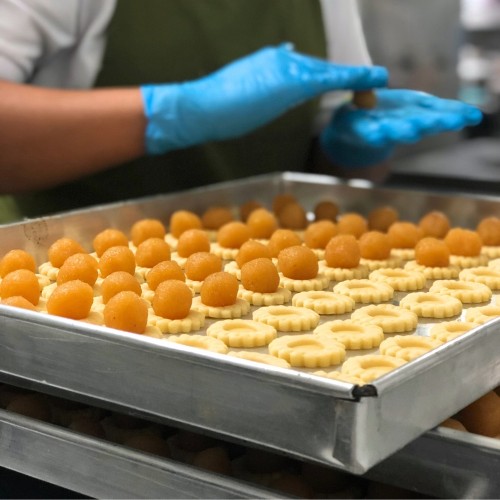 Our handmade pineapple tarts are dubbed as our golden nugget stars as they are the hot favourite every Chinese New Year! Each delicate tart has a glistening orb of chewy, soft pineapple jam which sits on a rich buttery pastry that crumbles and slowly melts in your mouth. This is the most popular choice for good reason - The word "pineapple" is translated to "Ong Lai" in Hokkien and "Wong Lai" in Cantonese, which literal translation is "the arrival of prosperity". :::::::: Bottle of est. 30pcs. Limited retail stocks available daily. Collection available from 15 Jan to 15 Feb '26 ::::::::
