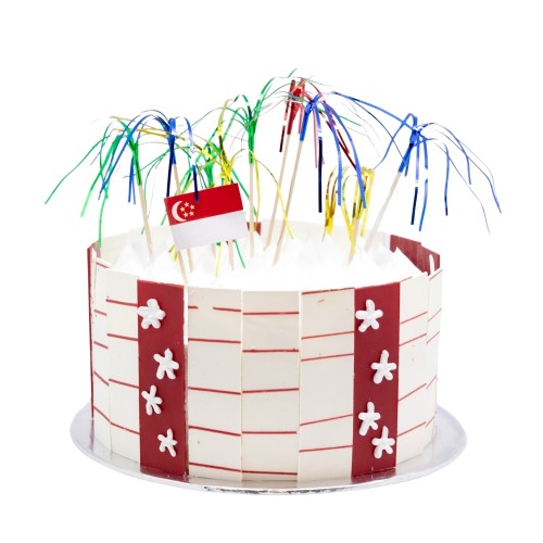 Decked out in patriotic pride, this show-stopping cake is a sweet tribute to any celebration. The sides are adorned with striking red and white chocolate panels, each detailed with hand-drawn lines and delicate stars inspired by the Singapore flag. Comes with a DIY decoration kit—complete with shimmering "fireworks" looking streamers and a mini flag—this cake invites you to join in the celebration, your way. Perfect for National Day parties or as a centrepiece for any true-blue Singaporean gathering. Choose from a wide range of cake flavours (top-up to exquisite flavours such as Passion Pink Guava, Rambutan Osmanthus Yogurt, Strawberry Milk-Shake Panna Cotta, Grapefruit Oolong, Yakult Soju, etc available, contact our team for assistance). For further customisation request, please contact 6457 6159. Delivery service available at $18 per trip, waived for orders above $280. For urgent order of less than required notice period, please contact us at 64576159 or enquiries@pgcake.com for assistance.