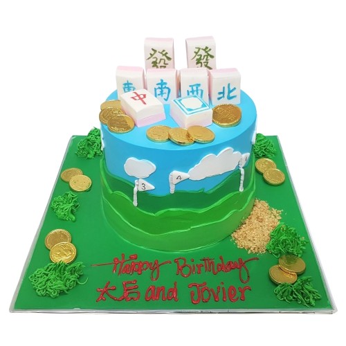 A special joint celebration? Or looking at a cake for the one with many passion? Get this mahjong and golf theme cake for a one-stone-two-birds solution! This is a tumbler shaped cake (2 cakes stacked up to make it taller). Choose from a wide range of cake flavours (top-up to exquisite flavours such as Passion Pink Guava, Rambutan Osmanthus Yogurt, Strawberry Milk-Shake Panna Cotta, Grapefruit Oolong, Yakult Soju, etc available, contact our team for assistance). For further customisation request, please contact 6457 6159. Delivery service available at $18 per trip, waived for orders above $280. For urgent order of less than required notice period, please contact us at 64576159 or enquiries@pgcake.com for assistance.