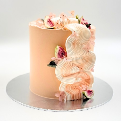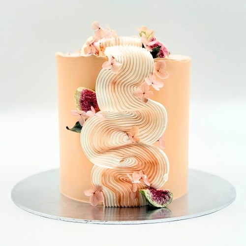 Bold, expressive, and effortlessly refined, Modern Muse is a celebration of contemporary cake design. Featuring thick, wavy piped lines that create sculptural movement, this artistic piece is adorned with freeze-dried figs and dainty preserved flowers for a touch of organic beauty. The result is a harmonious blend of texture, form, and nature—ideal for trendsetters, creatives, or anyone drawn to modern elegance with a soulful twist. This is a tumbler shaped cake (2 cakes stacked up to make it taller). Choose from a wide range of cake flavours (top-up to exquisite flavours such as Passion Pink Guava, Rambutan Osmanthus Yogurt, Strawberry Milk-Shake Panna Cotta, Grapefruit Oolong, Yakult Soju, etc available, contact our team for assistance). For further customisation request, please contact 6457 6159. Delivery service available at $18 per trip, waived for orders above $280. For urgent order of less than required notice period, please contact us at 64576159 or enquiries@pgcake.com for assistance.