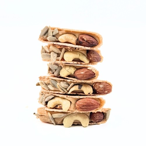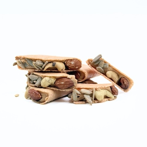 Folded love letters filled with creamy peanut butter and bejeweled with mixed nuts, offering a fragrant, nutty crunch with every bite. :::::::: Bottle of est. 20pcs. Collection available from 15 Jan to 15 Feb '26 ::::::::