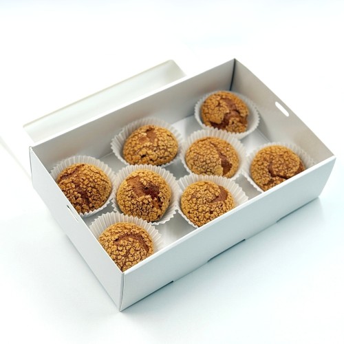 Comes in a box of 8pcs Choux Puff. A nostalgic twist on the classic French pastry — this choux puff is generously filled with luscious Pulut Hitam (black glutinous rice) filling, delicately infused with coconut milk for a rich, creamy finish. Earthy, fragrant, and beautifully balanced, it’s a delightful bite-sized tribute to a beloved local dessert. Perfect for any occasion!