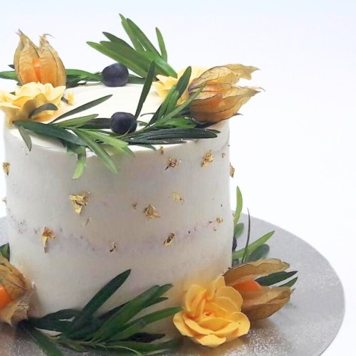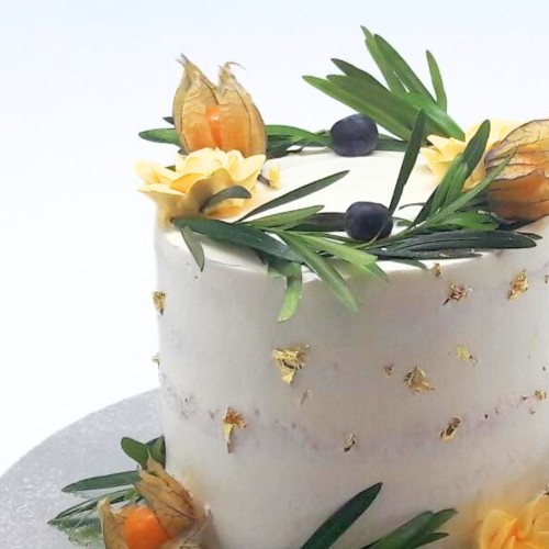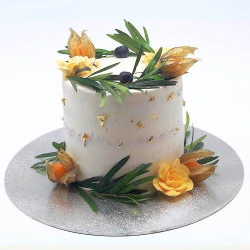 This minimalist rustic cake is decorated with rosemary herbs, gooseberry, blueberries and touches of edible gold leaves. Perfect for any rustic themes. This is a tumbler shaped cake (2 cakes stacked up to make it taller). Choose from a wide range of cake flavours (top-up to exquisite flavours such as Passion Pink Guava, Rambutan Osmanthus Yogurt, Strawberry Milk-Shake Panna Cotta, Grapefruit Oolong, Yakult Soju, etc available, contact our team for assistance). For further customisation request, please contact 6457 6159. Delivery service available at $18 per trip, waived for orders above $280. For urgent order of less than required notice period, please contact us at 64576159 or enquiries@pgcake.com for assistance.