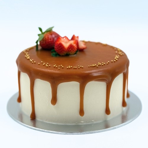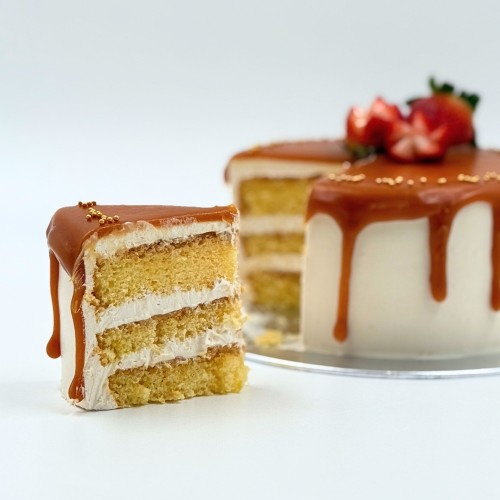 Made from vanilla sponge cake infused with a hint of orange peel, our Sea-Salt Caramel Cake is filled with perfectly balanced caramel cream and generously coated with our homemade sea-salt caramel sauce. Each bite offers a harmonious blend of rich caramel and delicate citrus, creating an irresistible flavor combination. For urgent order of less than 3days notice, please contact us at 64576159 or enquiries@pgcake.com for assistance.