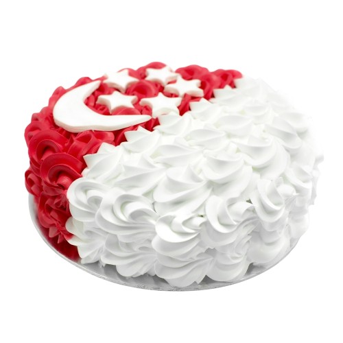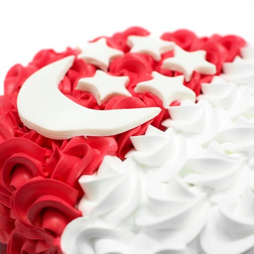 Celebrate the spirit of Singapore with this stunning red-and-white creation, inspired by the national flag. Hand-piped with delicate fresh cream rosettes, the cake features a bold crescent moon and five stars—a proud tribute to unity and progress. Perfect for National Day, milestone celebrations, or simply to honour your Singaporean pride in the sweetest way possible. Choose from a wide range of cake flavours (top-up to exquisite flavours such as Passion Pink Guava, Rambutan Osmanthus Yogurt, Strawberry Milk-Shake Panna Cotta, Grapefruit Oolong, Yakult Soju, etc available, contact our team for assistance). For further customisation request, please contact 6457 6159. Delivery service available at $18 per trip, waived for orders above $280. For urgent order of less than required notice period, please contact us at 64576159 or enquiries@pgcake.com for assistance.
