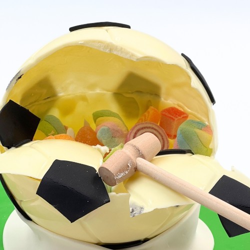 Three, two, one... Hit it! Everybody will loveee this Pinata cake because they get to hit the chocolate soccer ball to reveal a surprise find of cake, candies, chocolates & more! Choose from a wide range of cake flavours (top-up to exquisite flavours such as Passion Pink Guava, Rambutan Osmanthus Yogurt, Strawberry Milk-Shake Panna Cotta, Grapefruit Oolong, Yakult Soju, etc available, contact our team for assistance). For further customisation request, please contact 6457 6159. Delivery service available at $18 per trip, waived for orders above $280. For urgent order of less than required notice period, please contact us at 64576159 or enquiries@pgcake.com for assistance.