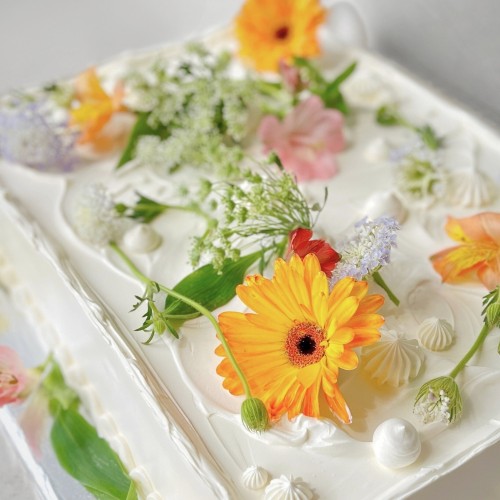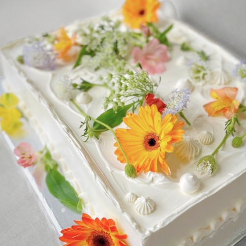 This trendy wedding sheet cake bursts with bold, vibrant colors, inspired by wildflowers in full bloom. The cake’s smooth surface serves as a canvas for an array of hand-piped detailing and fresh flowers in rich, striking hues. The dynamic floral arrangement adds a touch of whimsy and natural beauty, making this cake a joyful and eye-catching centerpiece for a celebration full of color and energy. NOTE: Fresh floras are seasonable and may be subjected to changes and stock availability. Further customisation options (e.g. Number of tiers, colours, finishes) and priority delivery available, subjected to availability. Please email us at enquiries@pgcake.com for more details.