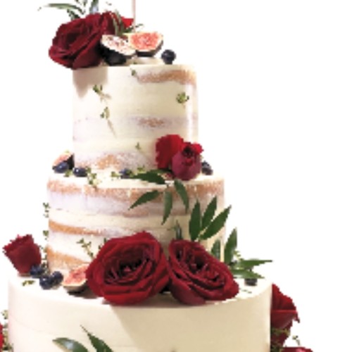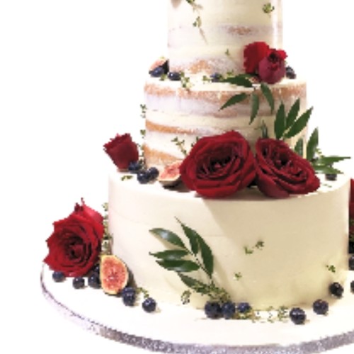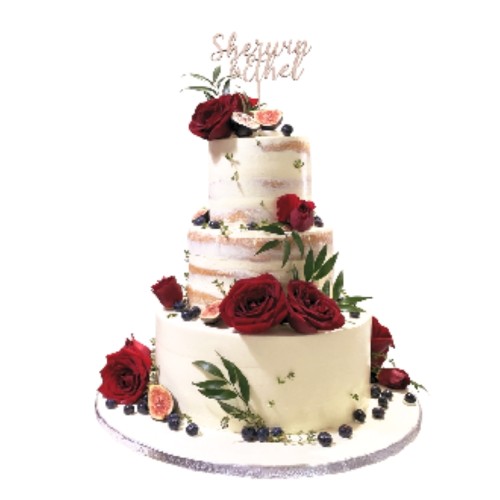A brilliant mix of fresh deep red roses, sprigs of italian ruscus and delicious fruits like figs and blueberries makes this 3-tier wedding cake a perfect addition to your wedding. Choose a semi-naked finish or a fully coated fresh cream exterior to your preference. Topper not included. NOTE: Fresh floras are seasonable and may be subjected to changes and stock availability. Further customisation options (e.g. Number of tiers, colours, finishes) and priority delivery available, subjected to availability. Please email us at enquiries@pgcake.com for more details.