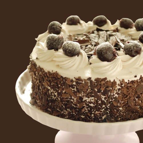 This delightful cake features layers of light fluffy vanilla sponge cake, interspersed with plump, dark sweet cherries soaked in brandy for an extra touch of decadence. F...